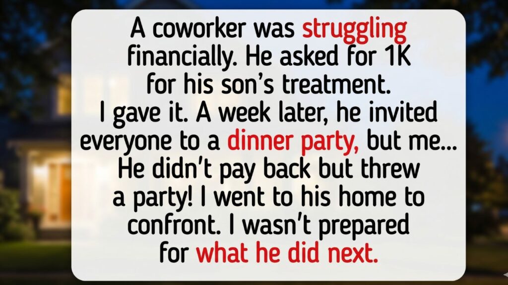 A week later, the employee overheard coworkers talking about a gathering at that same coworker’s house. Everyone seemed invited except them. Hurt and suspicious, they decided to go there and confront him.