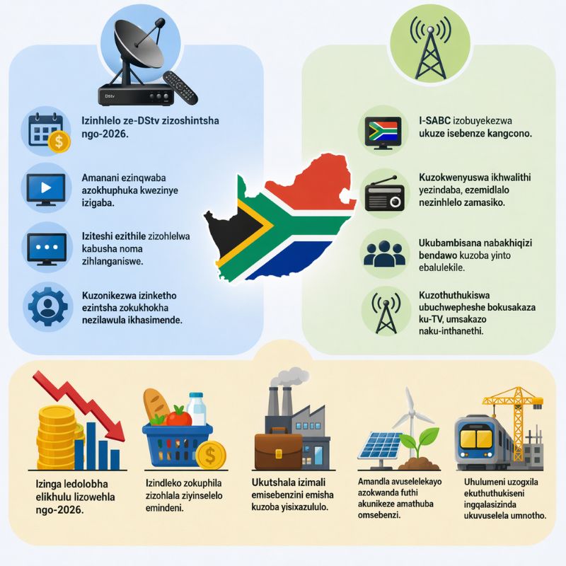 Imithetho emisha yezokusakaza: I-ICASA ishicilele imithetho emisha ye-Digital Terrestrial Television (DTT) ukuze kulungiselelwe ukuvalwa kokusakazwa kwe-analogue. Nakuba usuku olusemthethweni lungakamenyezelwa, le mithetho izobeka imigomo nemibandela emisha yezinkampani ezifana ne-DStv, i-SABC kanye ne-e-TV, futhi kuzoba nezijeziso kulabo abangayilandeli.